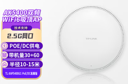 普聯(lián)(TP-LINK)2.5G口AX5400雙頻WiFi6無線吸頂式AP面板路由器全屋wifi接入點(diǎn)TL-XAP5400GC-PoE/DC易展版